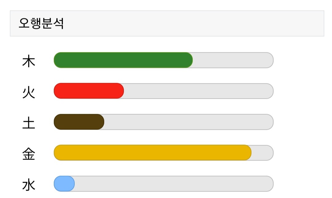 그리고 온라인 사주팔자라는게 있길래 오행 좀 봤어요